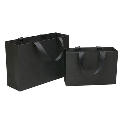 Sac de papier imprimé fait sur commande noir de luxe de Logo Jewelry Packaging Kraft Shopping de sac de papier de cadeau avec des poignées de ruban